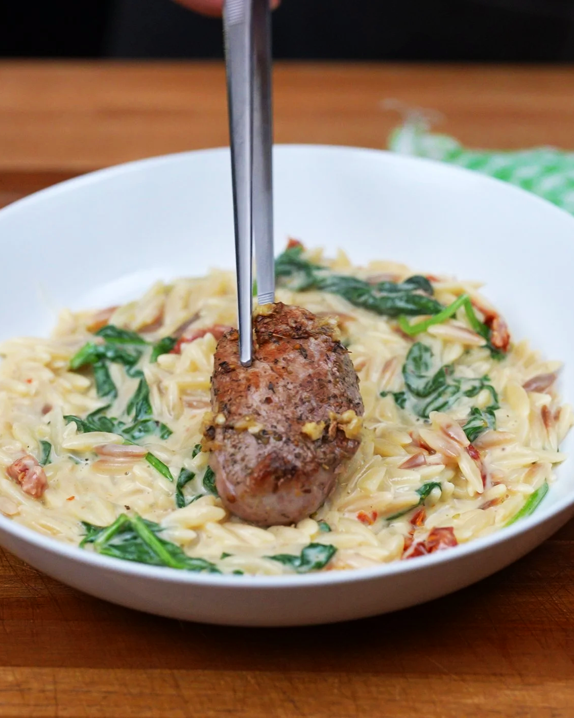 Creamy Tuscan Garlic Butter Pork Medallions with Orzo
