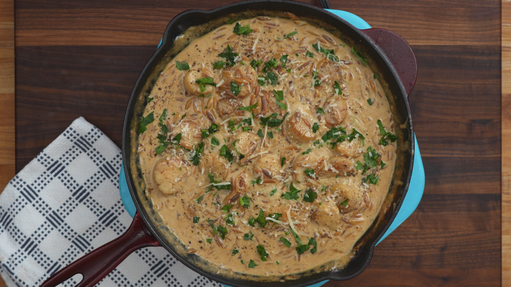 Creamy Scallop Orzo (One-Pan Garlic Parmesan)