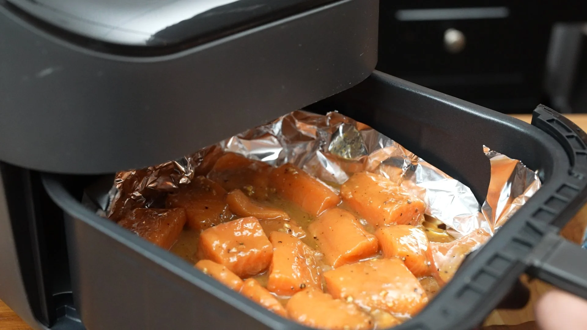 Yes—line the basket with foil to catch the juices, then spoon them back over the salmon after cooking.Are air fryer salmon bites healthy?