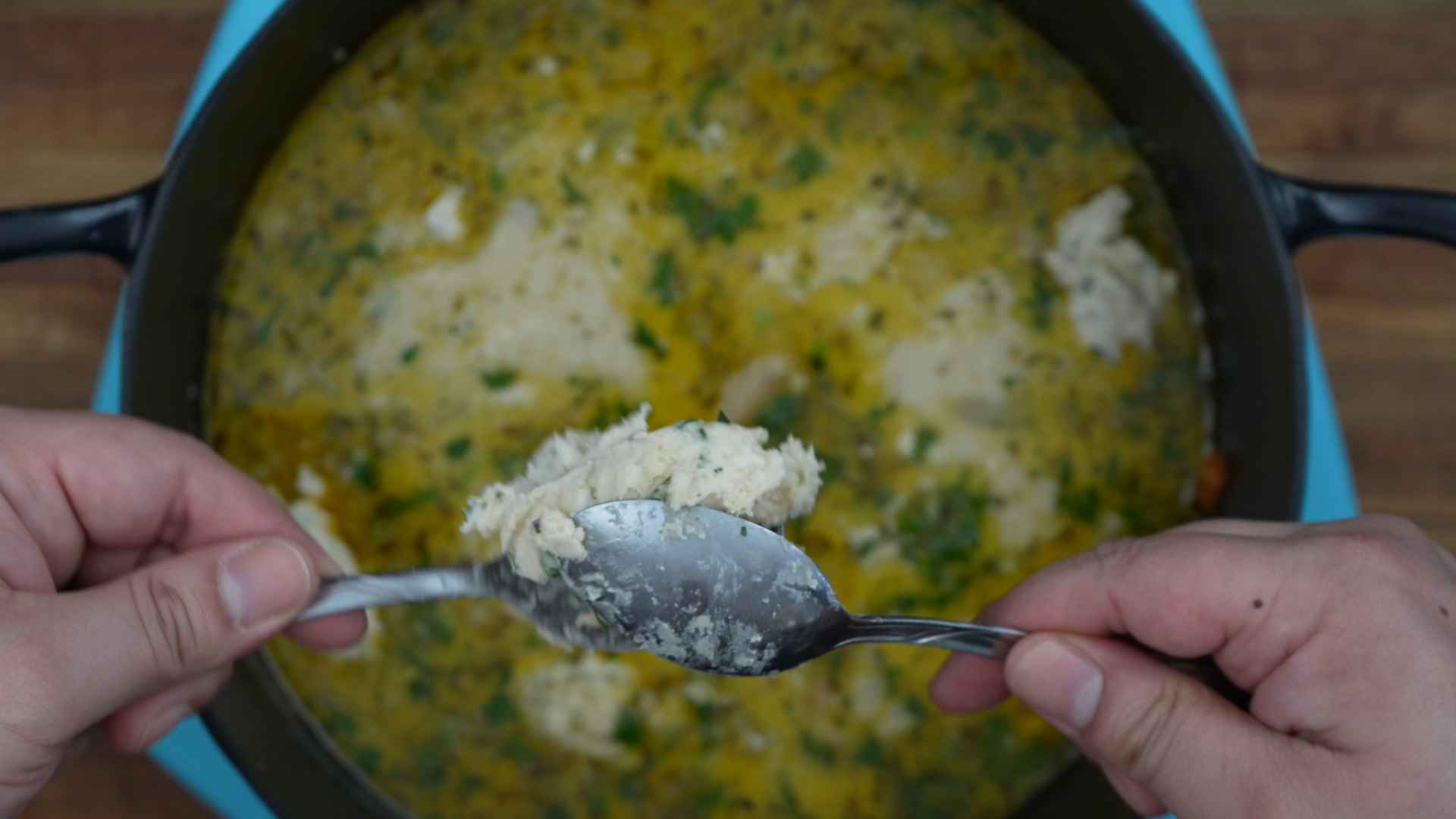 Use a gentle simmer, not a boil. A hard boil can break the cream and toughen dumplings.