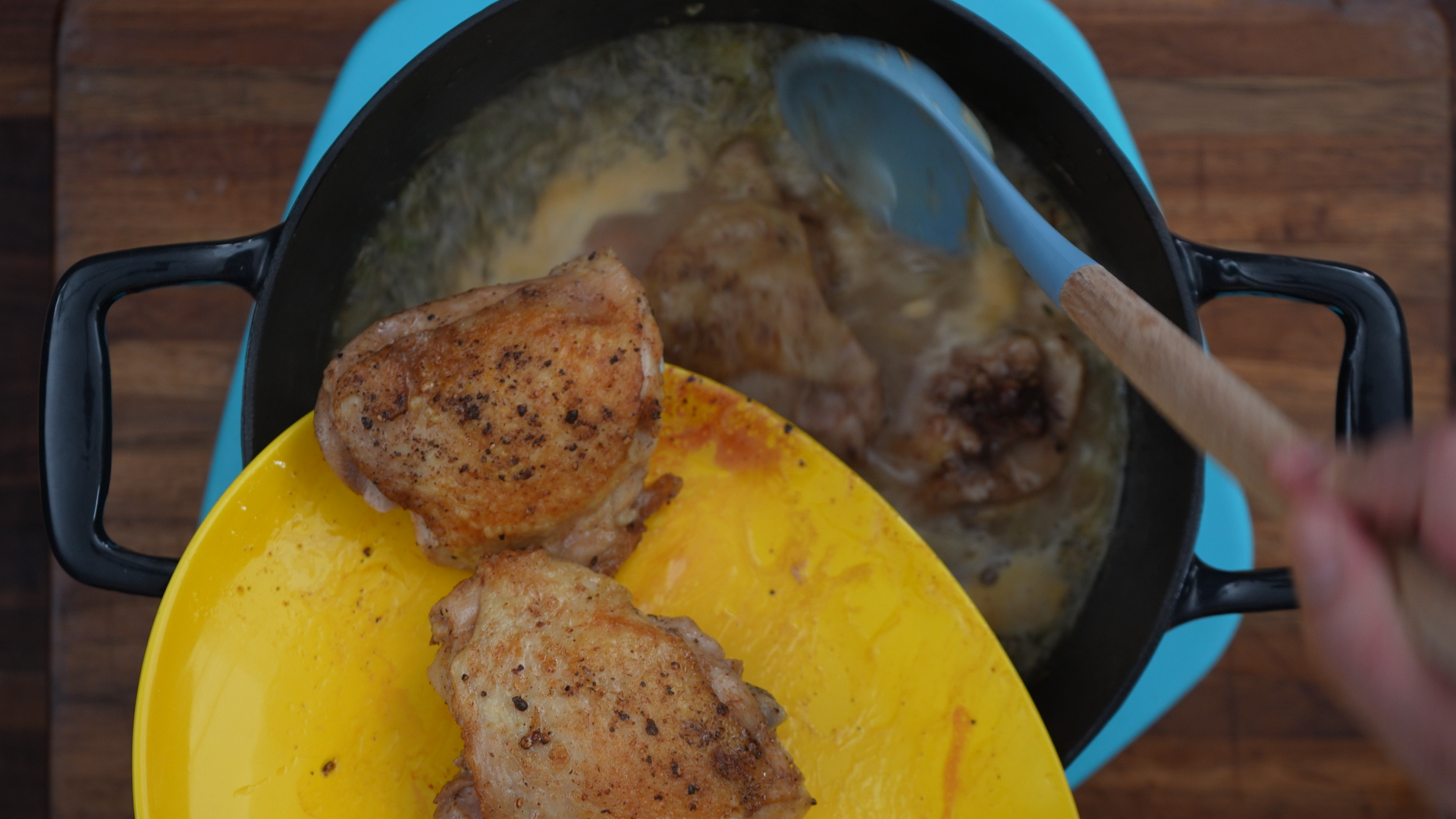 Sear the chicken thighs